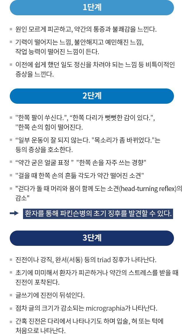 증상에 대한 완화와 진행단계를 지연시키는 것이 중점